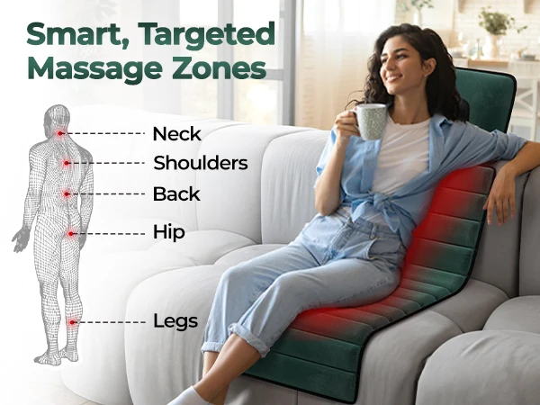 Full Body Massage Mat with Heat, Detachable Massager Pad Deep Tissue Pain Relief,10 Vibrating Motors and 9 Speed Settings Relax
